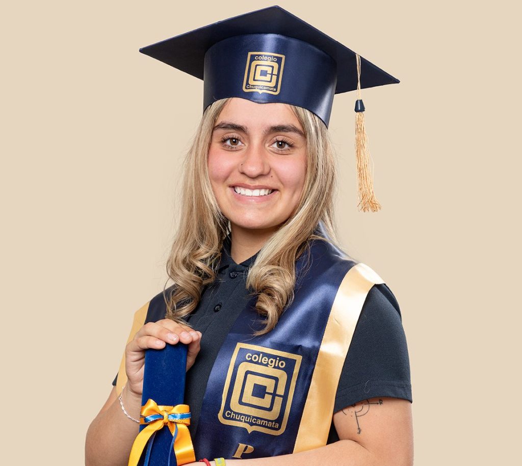 Mensaje a mis compañeros: “Mis compañeros, mi familia, mis amigos, los que me acompañaron en este trayecto de 12 años, muchísimas gracias todos por todo lo vivido, por las anécdotas, las risas, los momentos juntos, todo lo que vivimos quedara inmortalizado en mi memoria, porque sin ustedes, no hubiera sido lo mismo salir de 4º medio. Espero que puedan cumplir sus sueños como de verdad lo desean, yo sé que ustedes pueden ya que cada uno con sus cualidades, son capaces de hacer lo que ustedes deseen. Los amo con todo mi corazón y gracias por todo. Sobre todo este último año al ser el más importante, nos conectó como curso y nos dimos cuenta que somos el mejor curso de todos y eso nunca se perderá”.